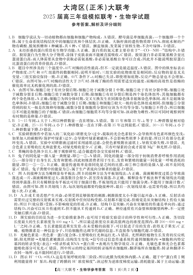2025届广东省大湾区(正禾)大联考高三上学期模拟联考 生物答案