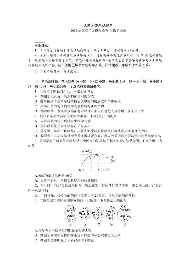 2025届广东省大湾区(正禾)大联考高三上学期模拟联考 生物