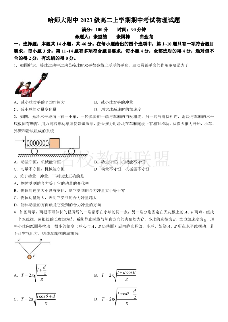 黑龙江省哈尔滨师范大学附属中学2024-2025学年高二上学期期中考试 物理