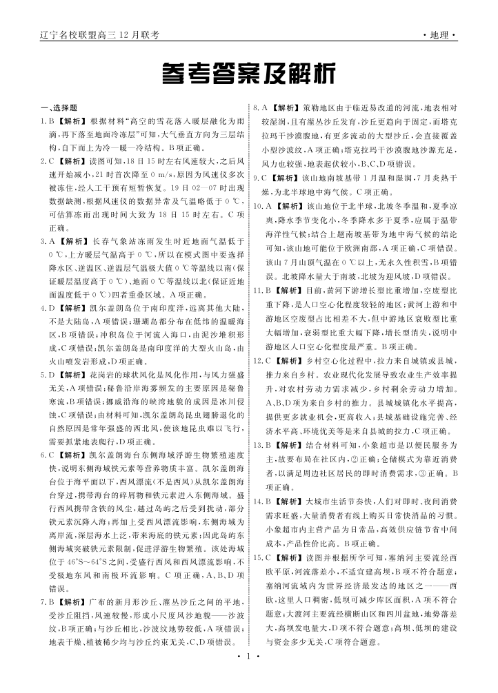 辽宁省名校联盟2024年高三12月份联合考试 地理答案