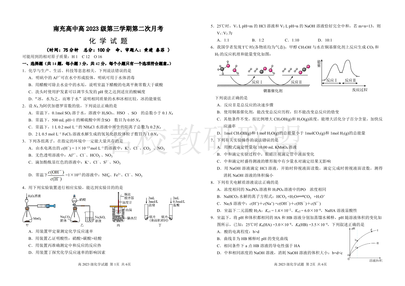 四川省南充高级中学2024-2025学年高二上学期第二次月考 化学