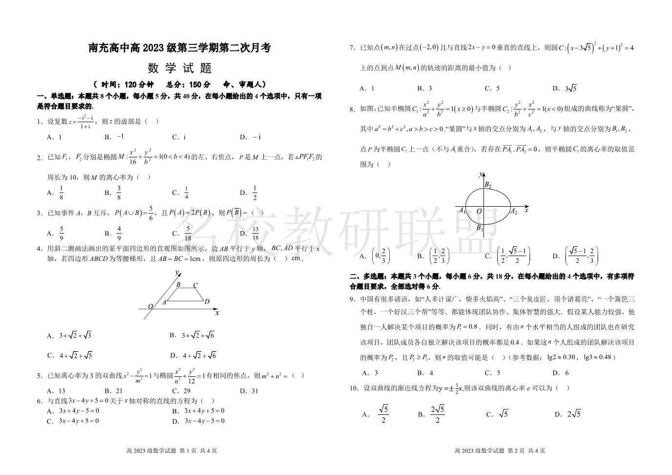 四川省南充高级中学2024-2025学年高二上学期第二次月考 数学