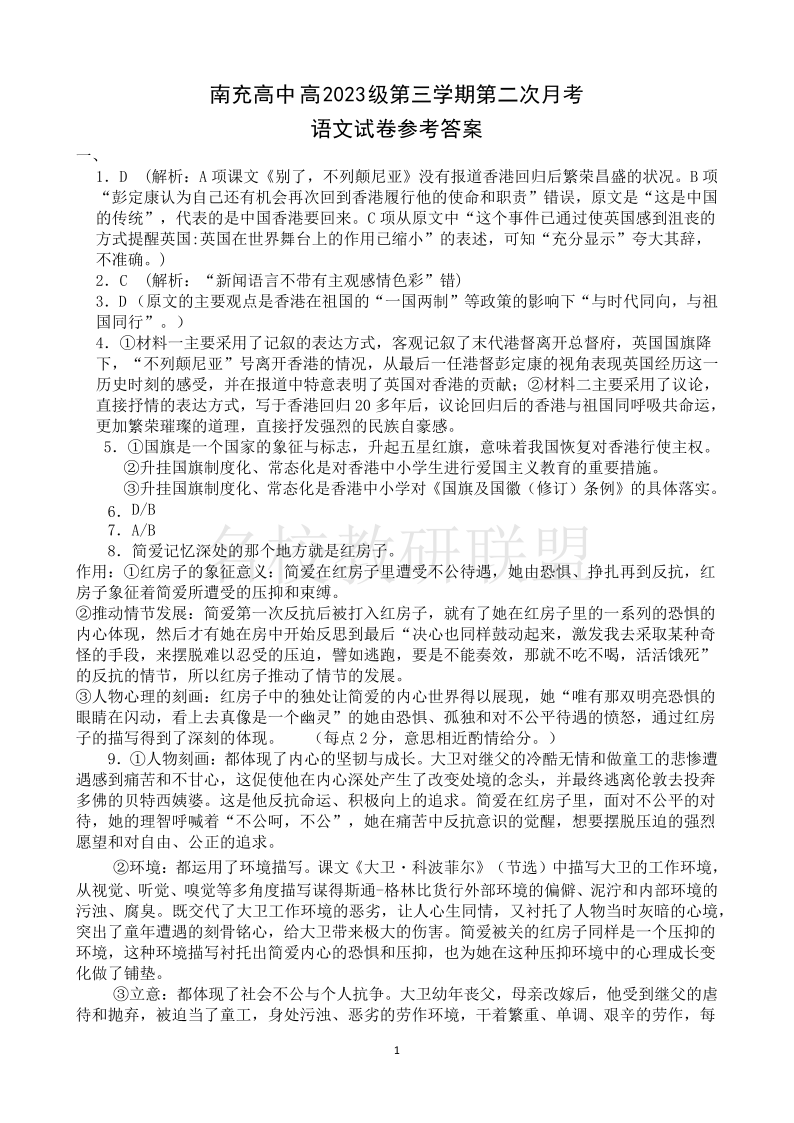 四川省南充高级中学2024-2025学年高二上学期第二次月考 语文答案