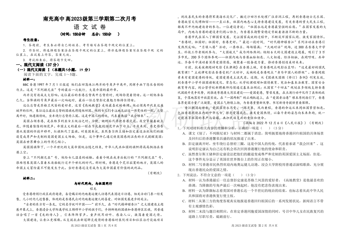 四川省南充高级中学2024-2025学年高二上学期第二次月考 语文