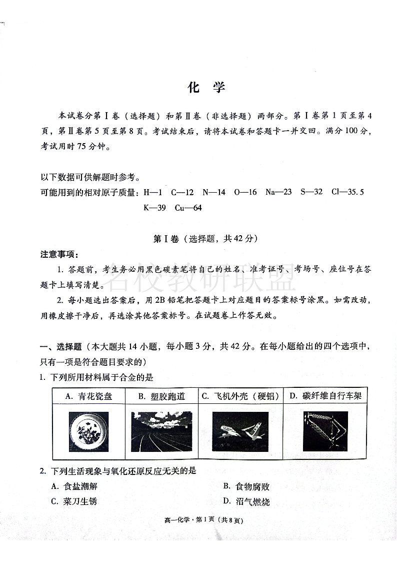 贵州省贵阳市2024-2025学年高一上学期12月月考 化学
