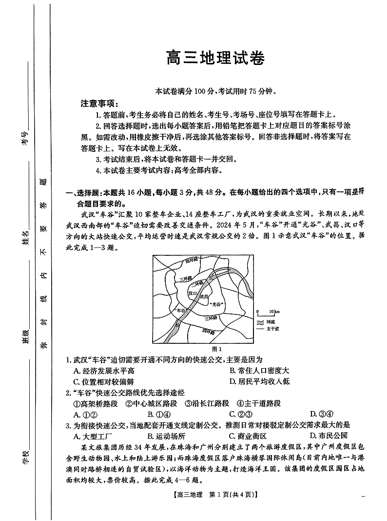 青海省部分学校2025届高三12月大联考 地理