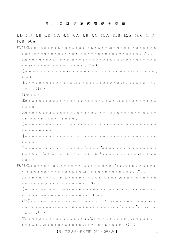 青海省部分学校2025届高三12月大联考 政治答案