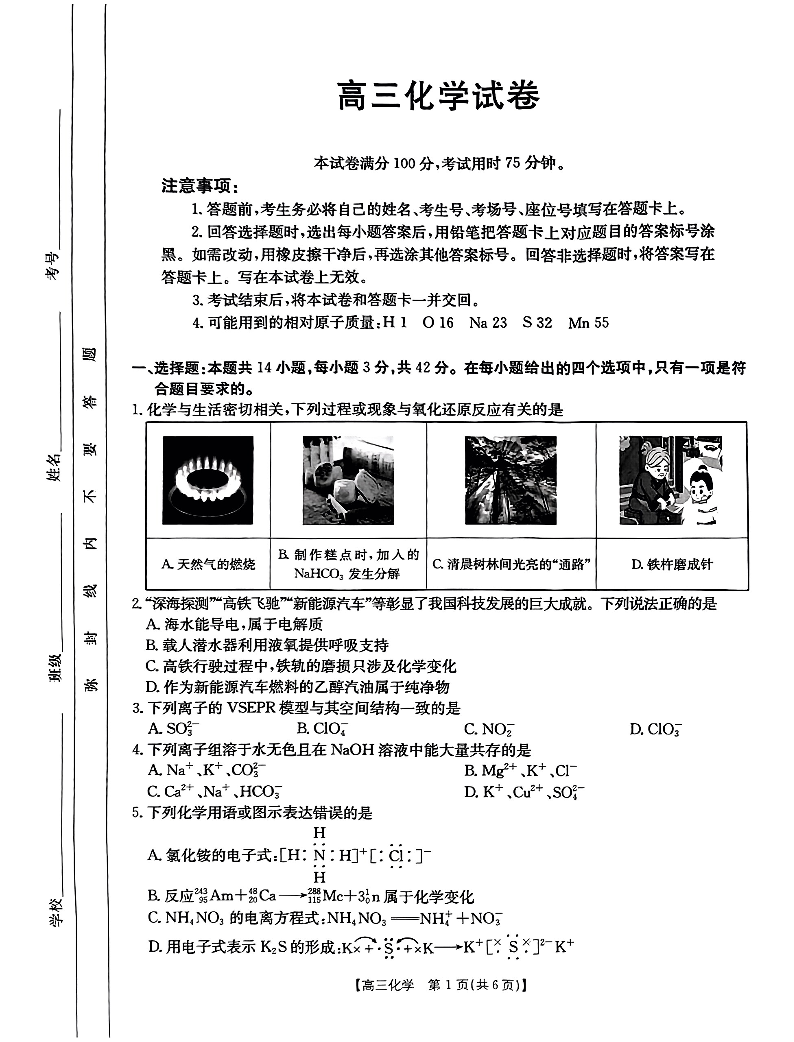 青海省部分学校2025届高三12月大联考 化学答案
