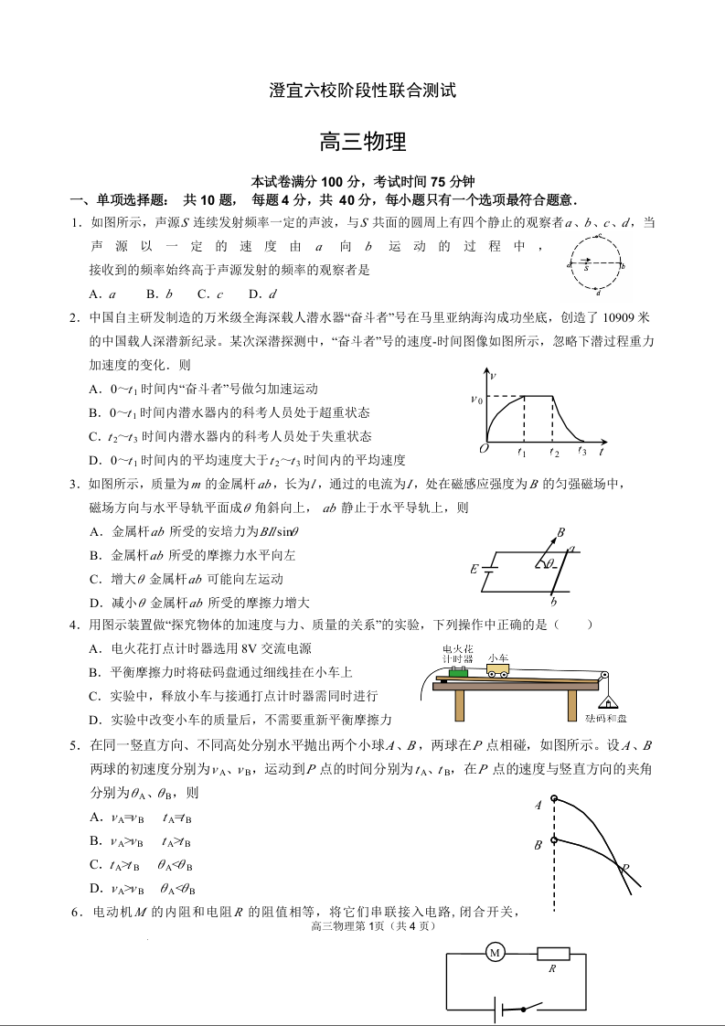 江苏省无锡市澄宜六校2025届高三上学期12月联考 物理