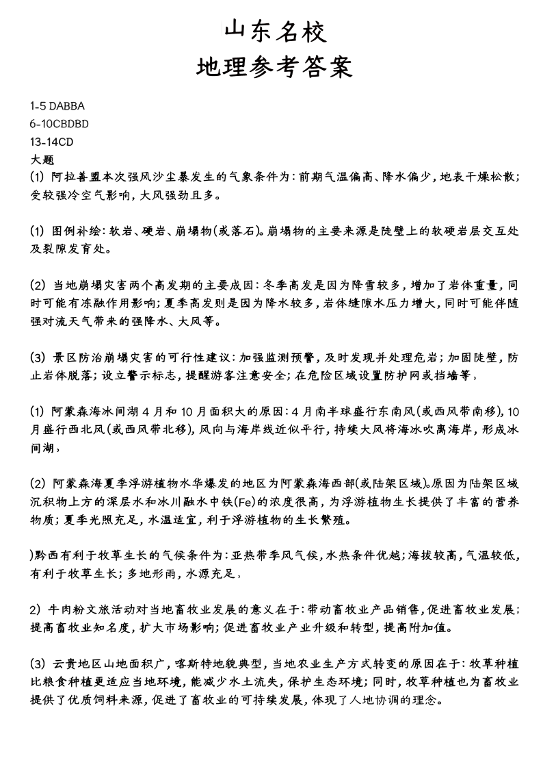 山东省名校考试联盟2024年12月高三阶段性检测 地理答案