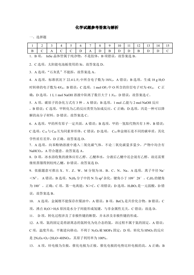 湖北省“腾•云”联盟2024-2025学年度上学期12月联考 化学答案