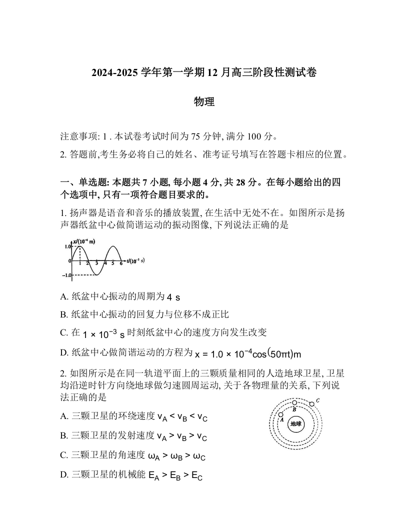 河北省NT教育2025届高三上学期12月阶段性测 物理