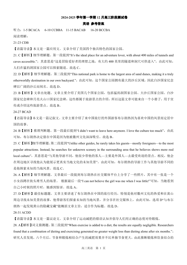 河北省NT教育2025届高三上学期12月阶段性测 英语答案