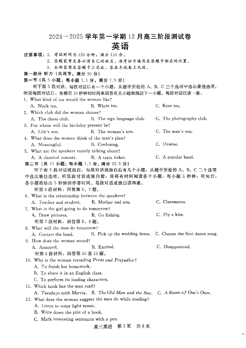 河北省NT教育2025届高三上学期12月阶段性测 英语