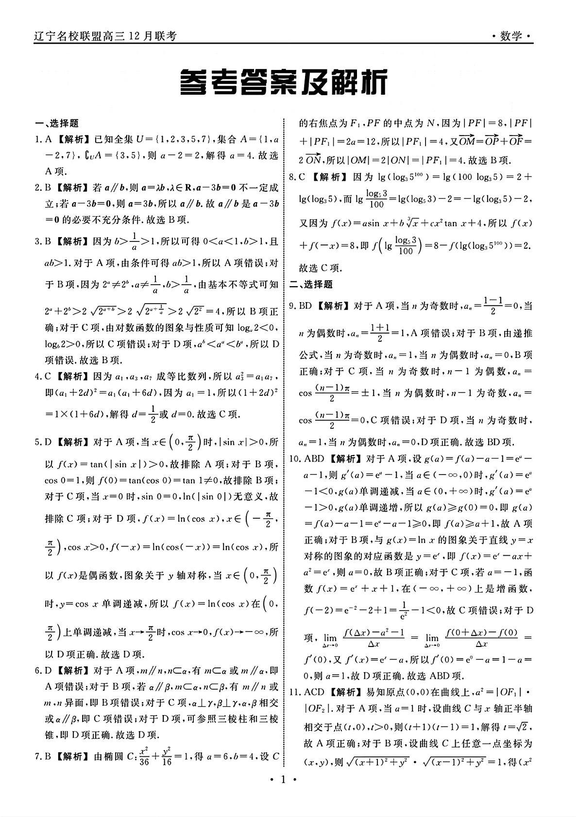 辽宁省名校联盟2024年高三12月份联合考试 数学答案
