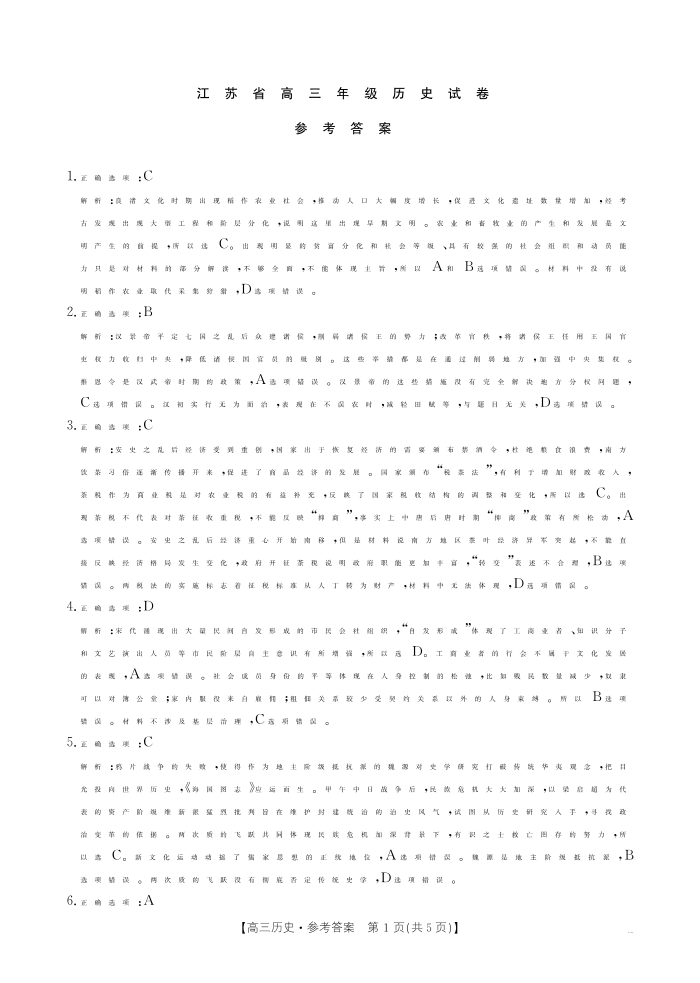 江苏省卓越高中联盟2025届高三年级12月月考 历史答案