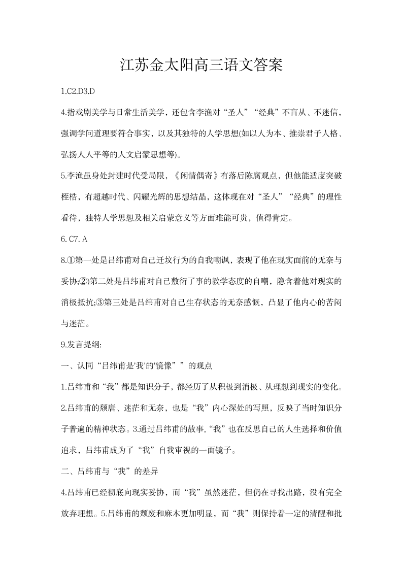 江苏省卓越高中联盟2025届高三年级12月月考 语文答案