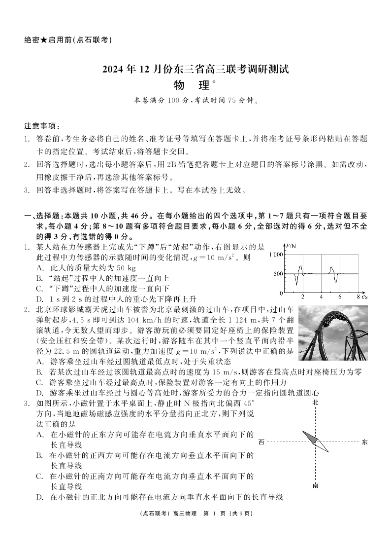2024年12月份东三省高三联考调研测试 物理