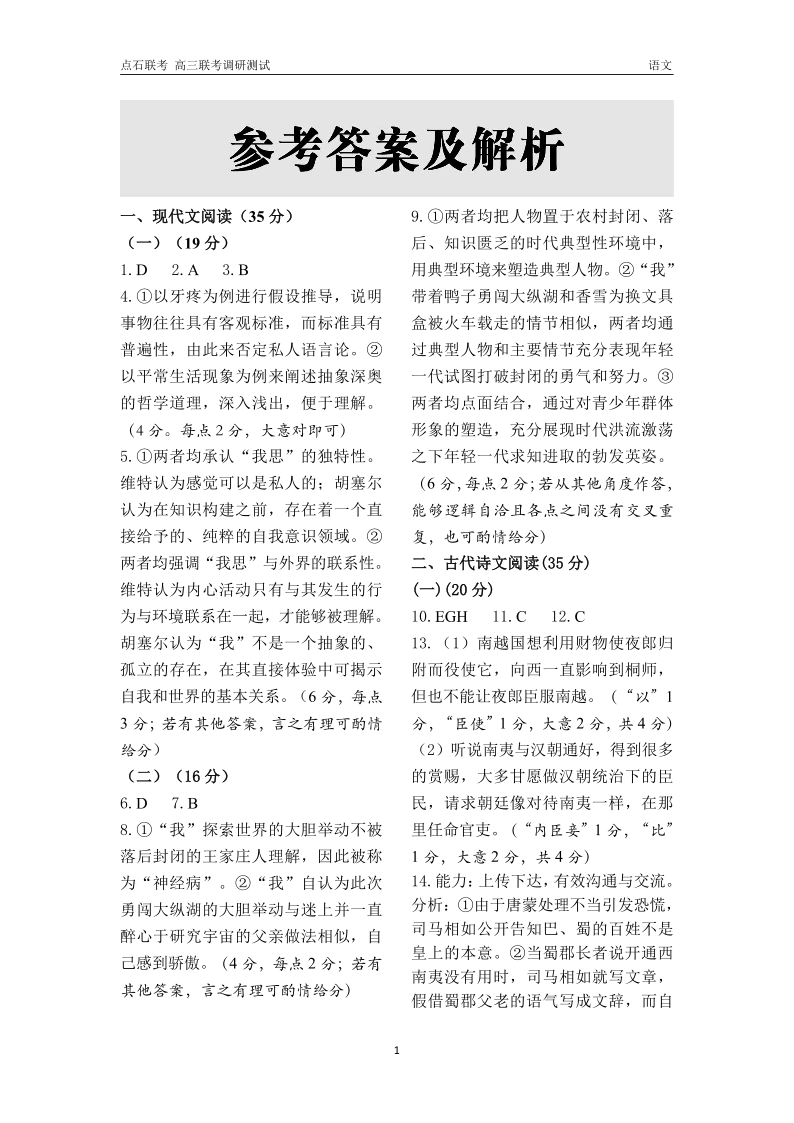 2024年12月份东三省高三联考调研测试 语文答案