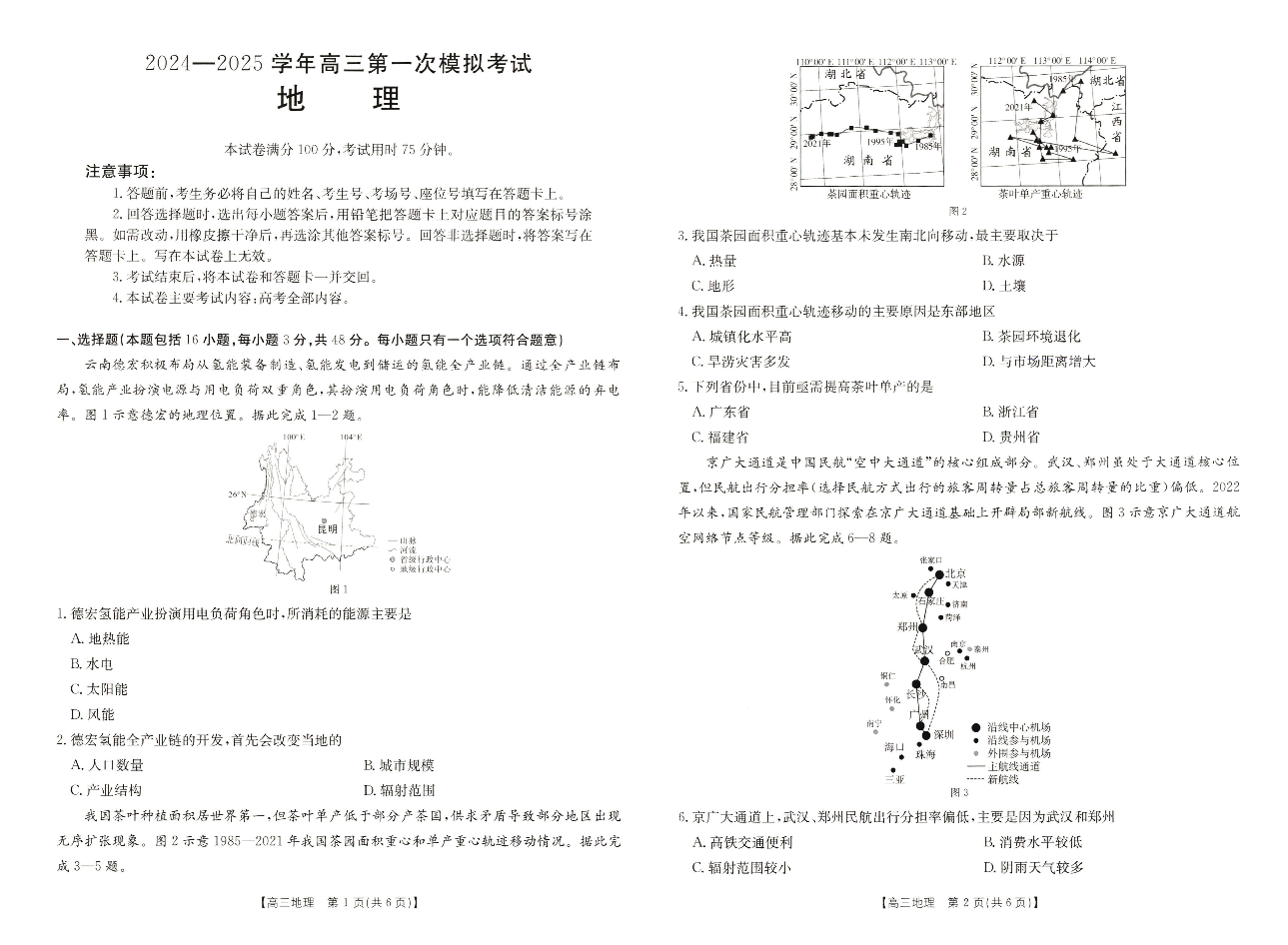 河南省新乡市2024年12月高三年级第一次模拟考试 地理