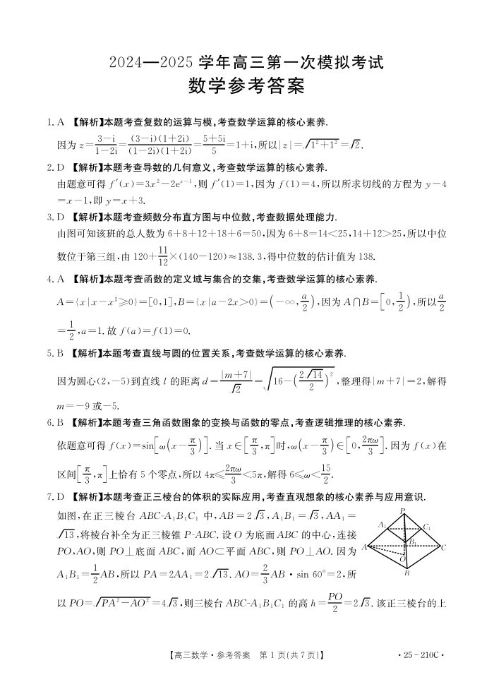 河南省新乡市2024年12月高三年级第一次模拟考试 数学答案