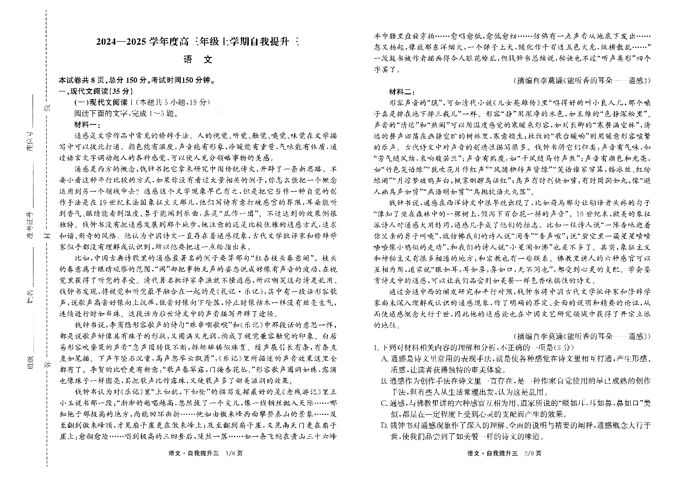 河北省衡水市冀州中学2025届高三上学期12月月考 语文