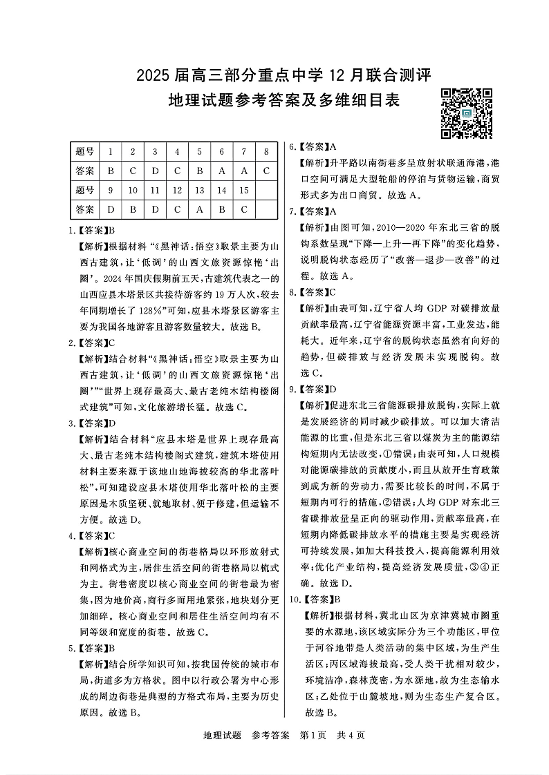 【T8联考】2025届高三部分重点中学12月联合测评 地理答案