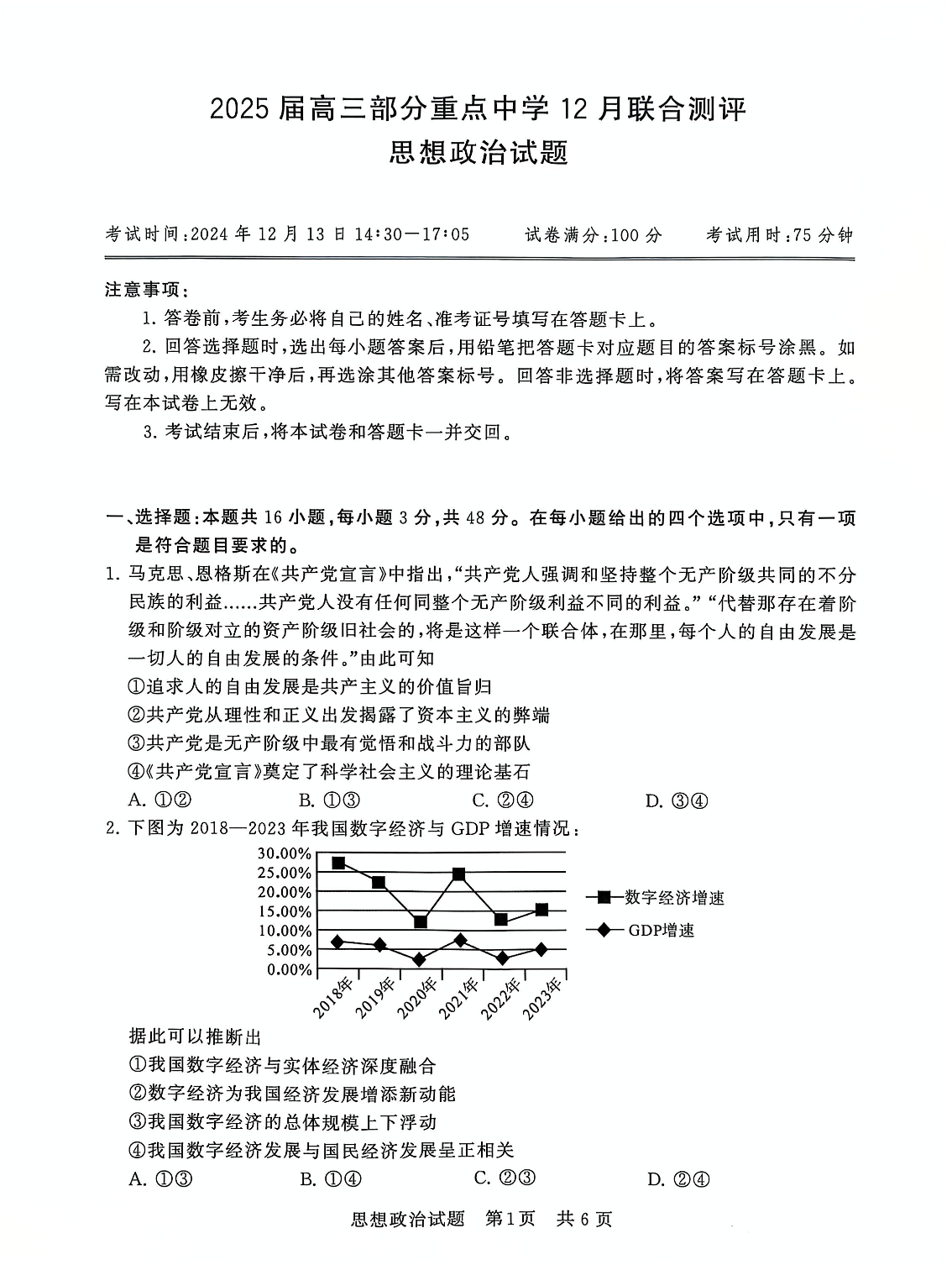 【T8联考】2025届高三部分重点中学12月联合测评 政治
