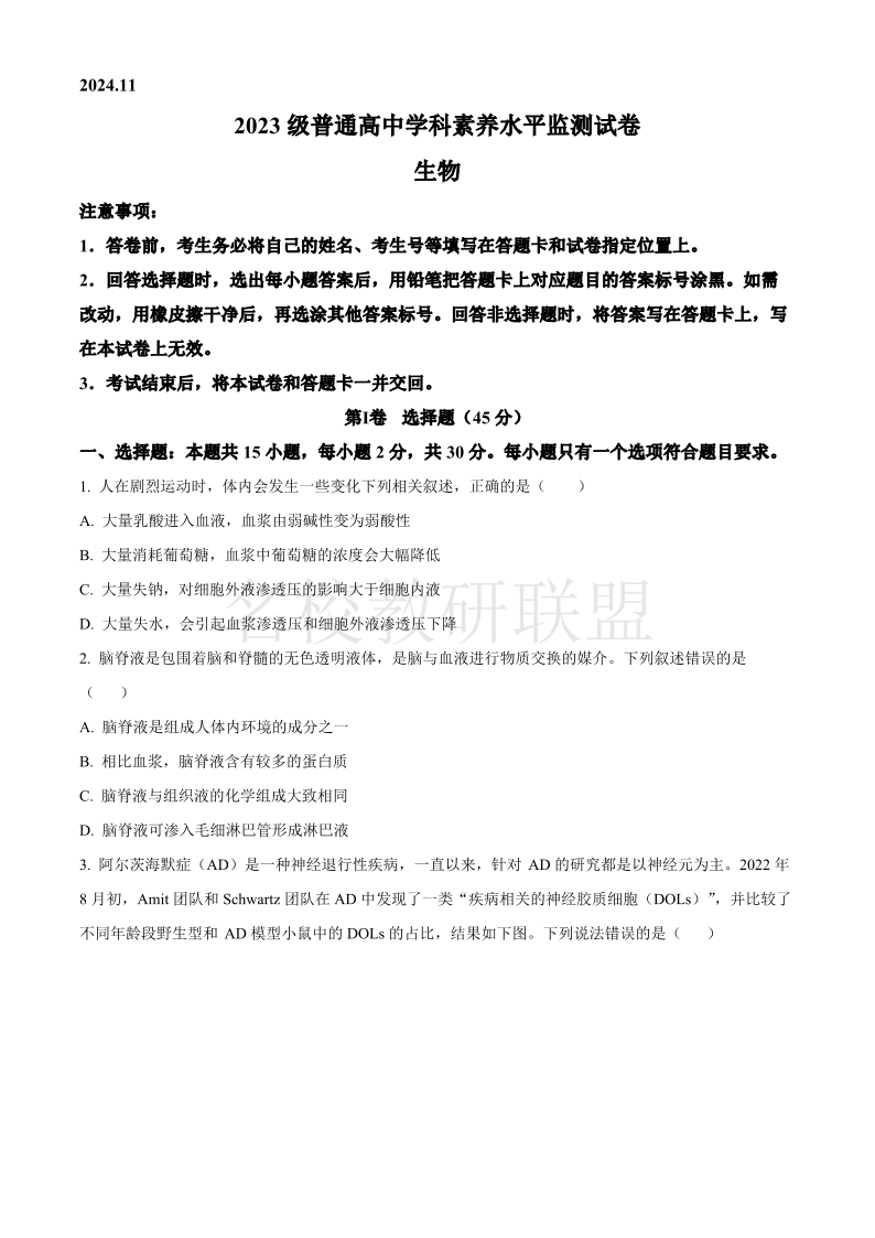 山东省临沂市2024-2025学年高二上学期期中考试 生物