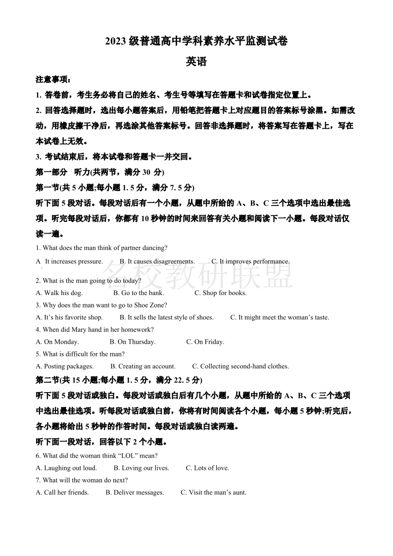 山东省临沂市2024-2025学年高二上学期期中考试 英语答案