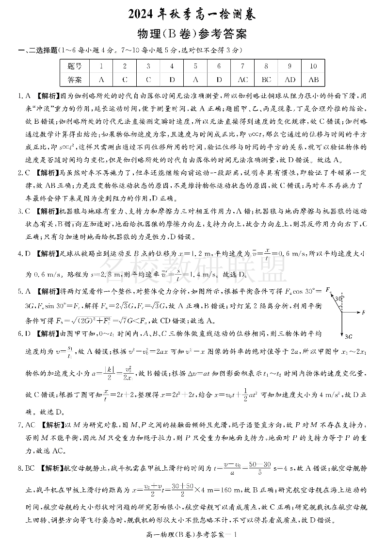 湖南省长沙市长郡中学2024-2025学年高一上学期12月月考 物理答案