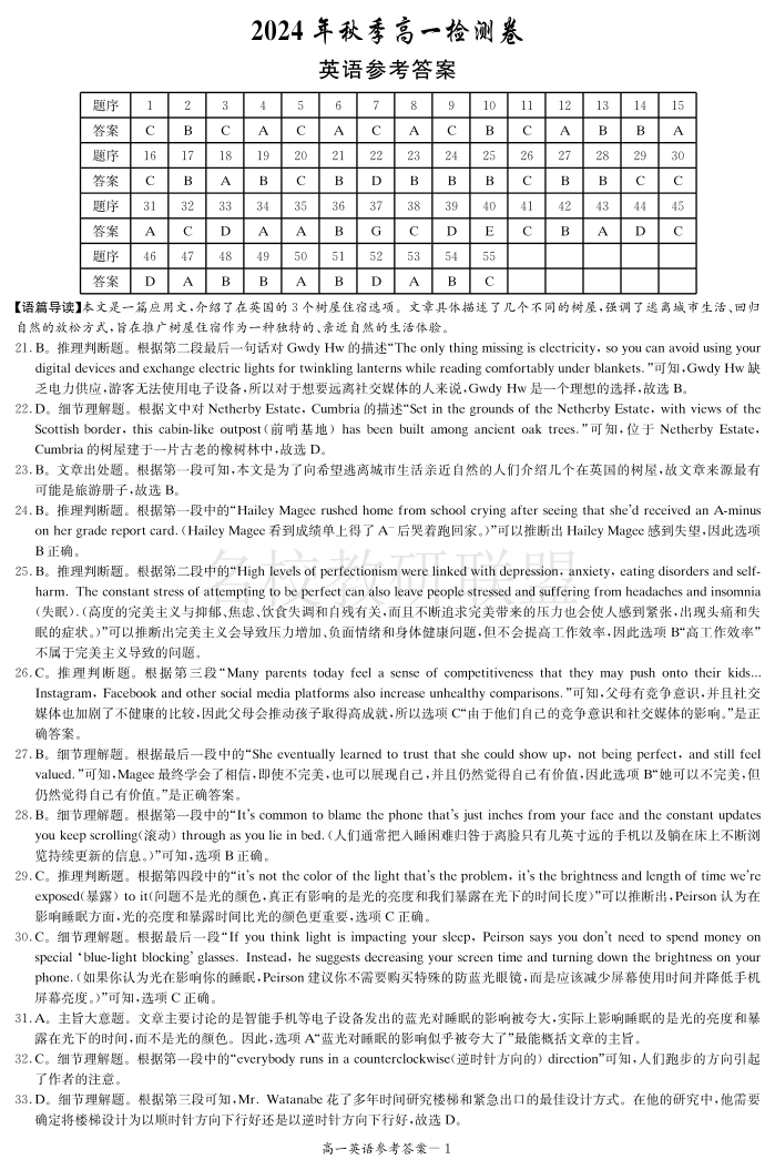 湖南省长沙市长郡中学2024-2025学年高一上学期12月月考 英语答案