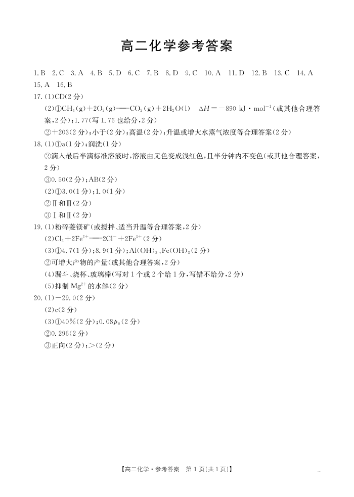广东省部分名校2024-2025学年高二上学期12月联合检测 化学答案