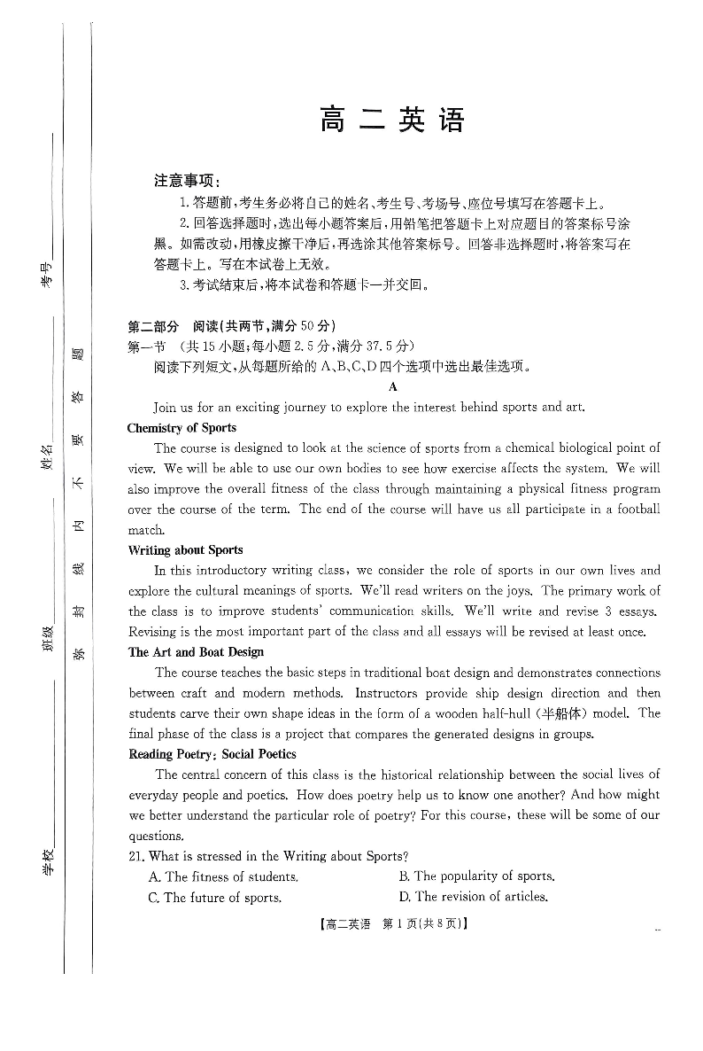 广东省部分名校2024-2025学年高二上学期12月联合检测 英语