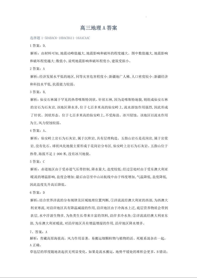 辽宁省鞍山市普通高中2025届高三年级上学期第三次月考 地理答案
