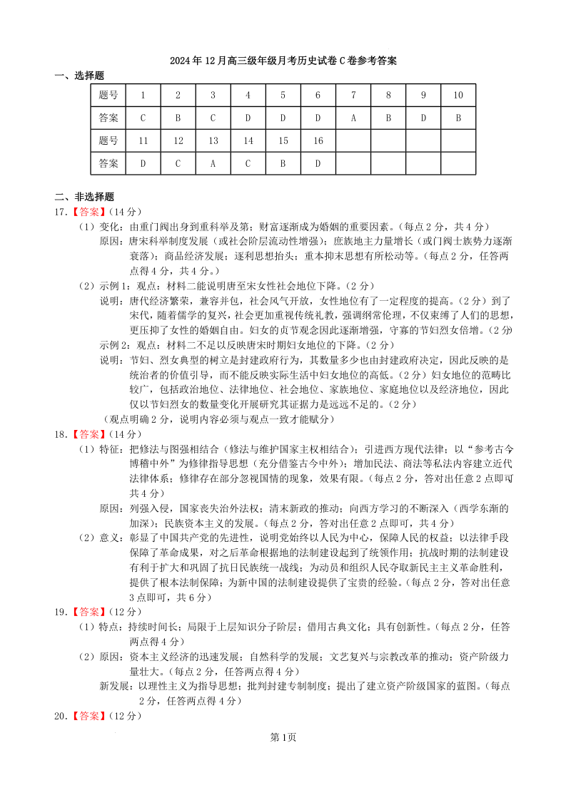 辽宁省鞍山市普通高中2025届高三年级上学期第三次月考 历史答案