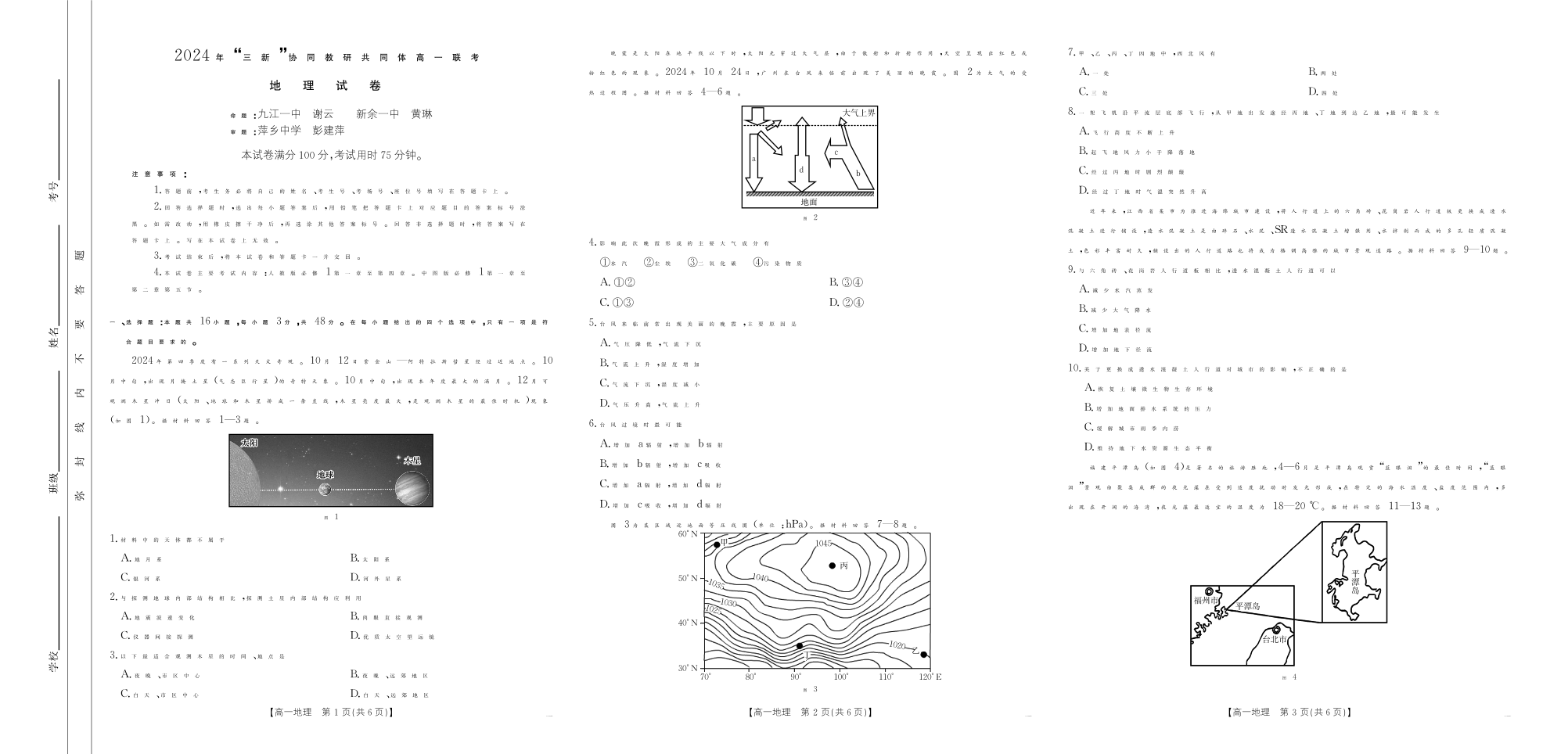 2025届江西三新协同联考高一联考试卷 地理
