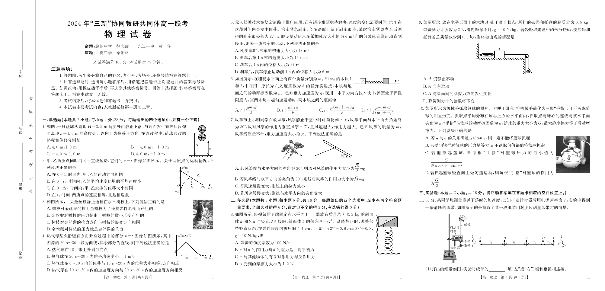 2025届江西三新协同联考高一联考试卷 物理