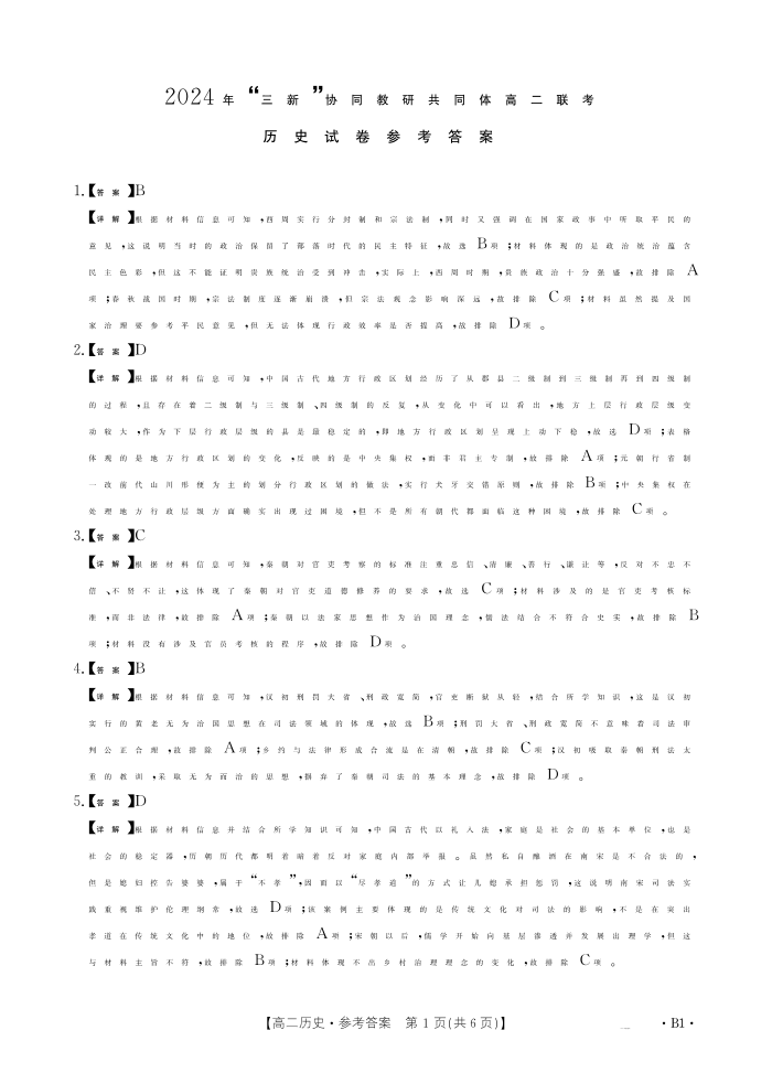 2025届江西三新协同联考高二联考试卷 历史答案