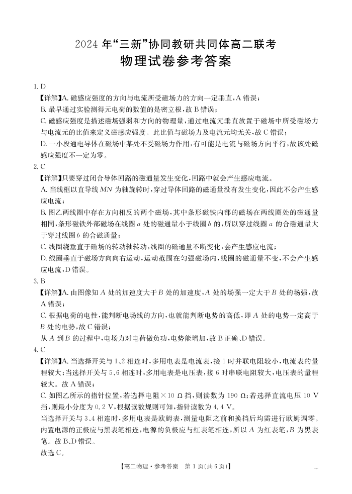 2025届江西三新协同联考高二联考试卷 物理答案