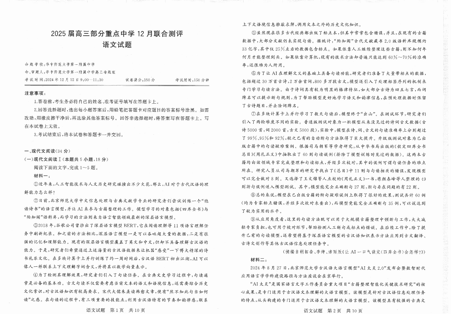 【T8联考】2025届高三部分重点中学12月联合测评 语文