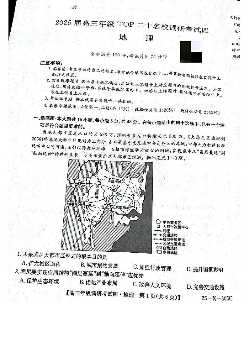 河南省2025届高三年级TOP二十名校调研测试四 地理