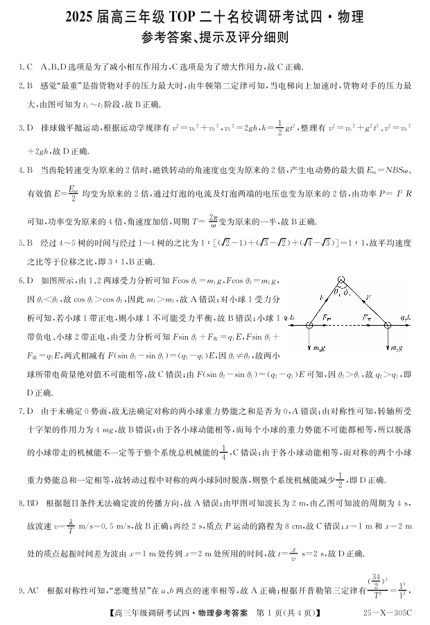 河南省2025届高三年级TOP二十名校调研测试四 物理答案