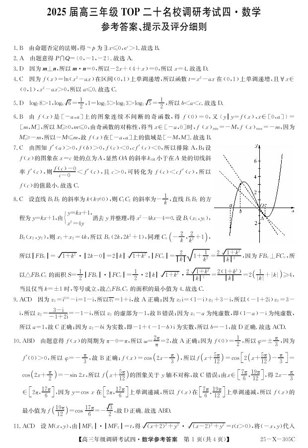 河南省2025届高三年级TOP二十名校调研测试四 数学答案