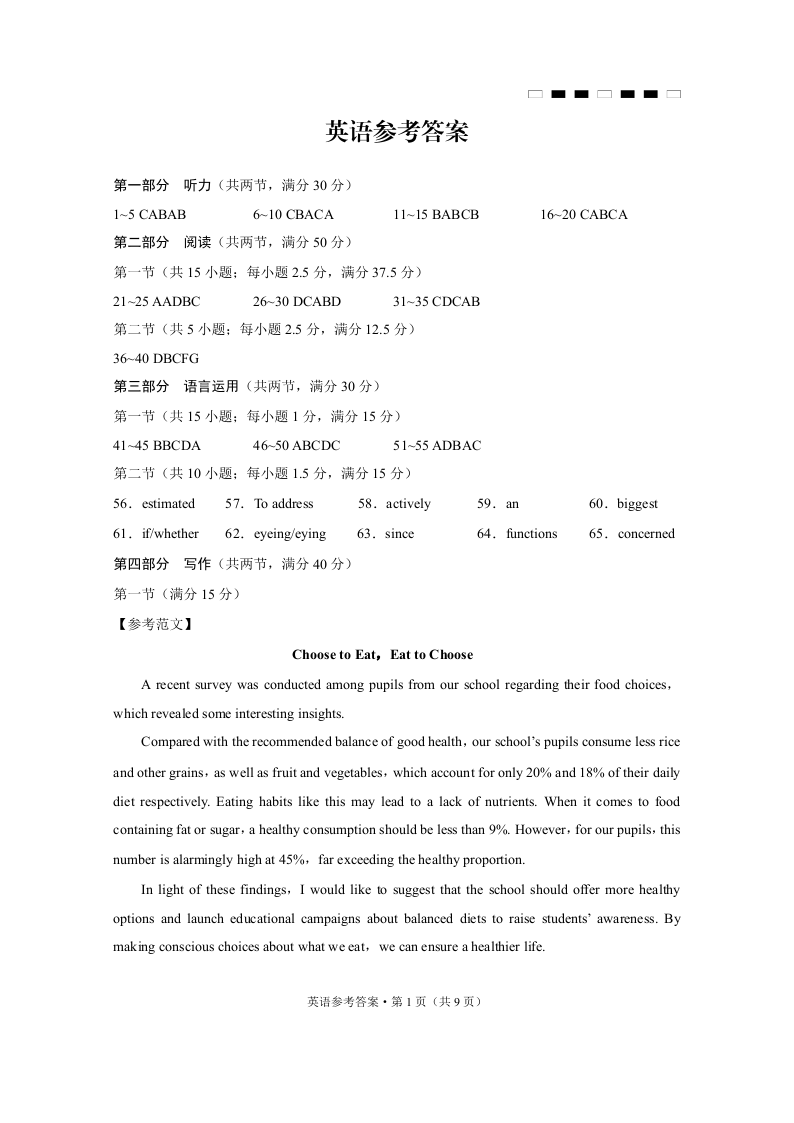 重庆巴蜀中学2025届高三12月适应性月考(四)英语答案