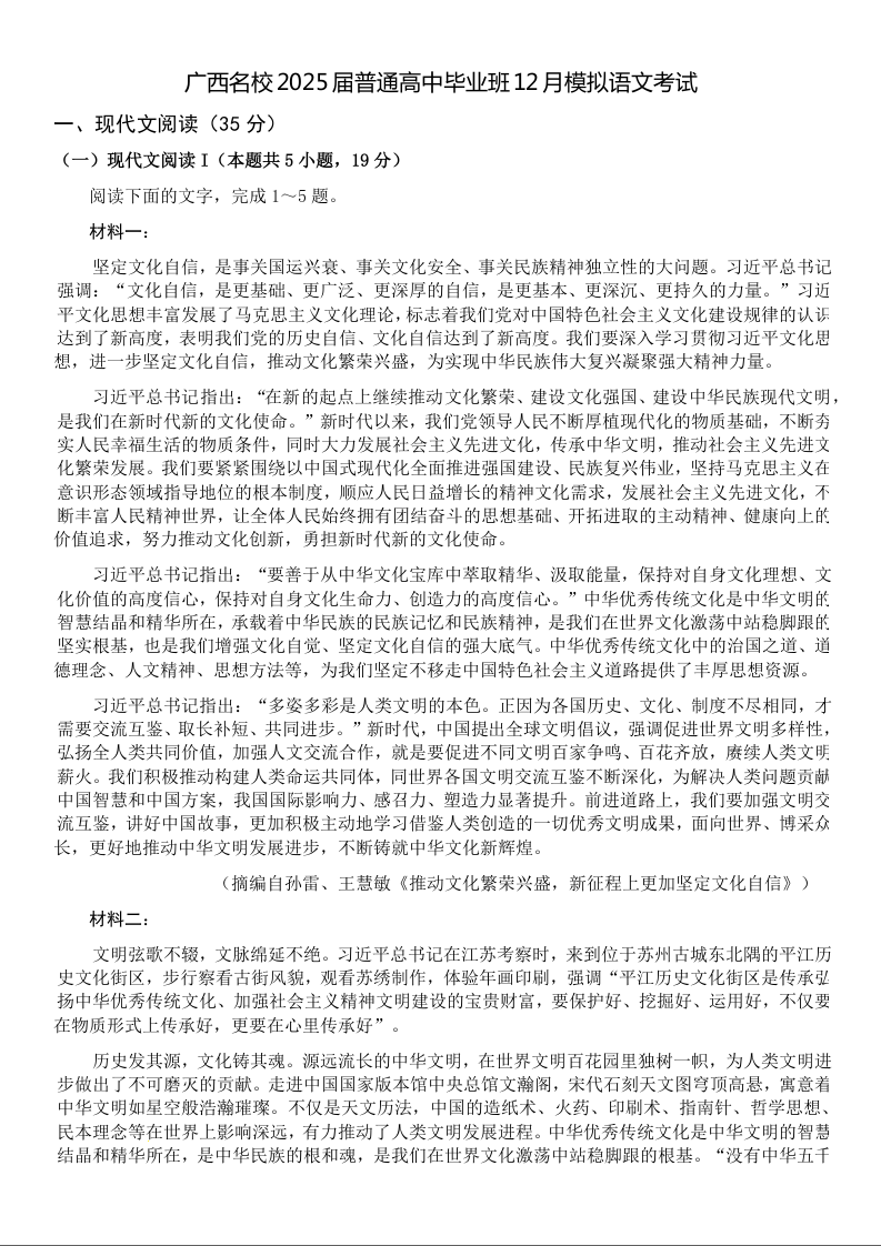 广西壮族自治区贵港市2024-2025学年高三上学期12月月考 语文