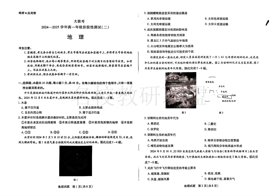 天一大联考2024-2025学年高一年级12月阶段性测试(二)地理