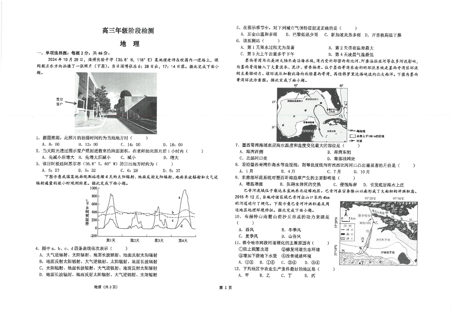 江苏省海安高级中学2024-2025学年高三上学期12月月考 地理