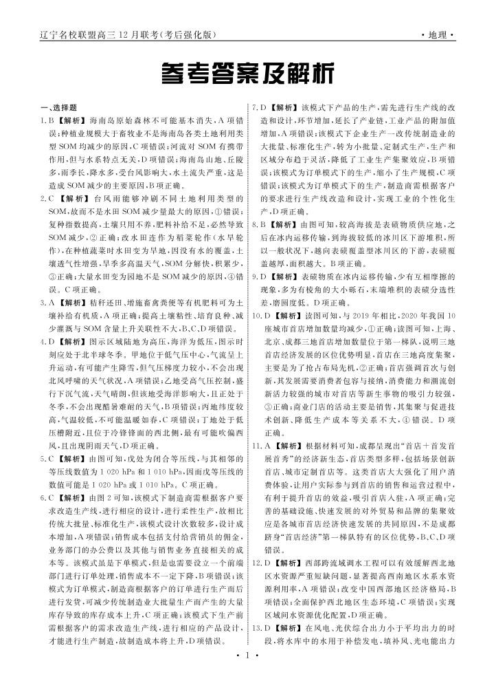辽宁省名校联盟2024年高三12月份联合考试 地理答案