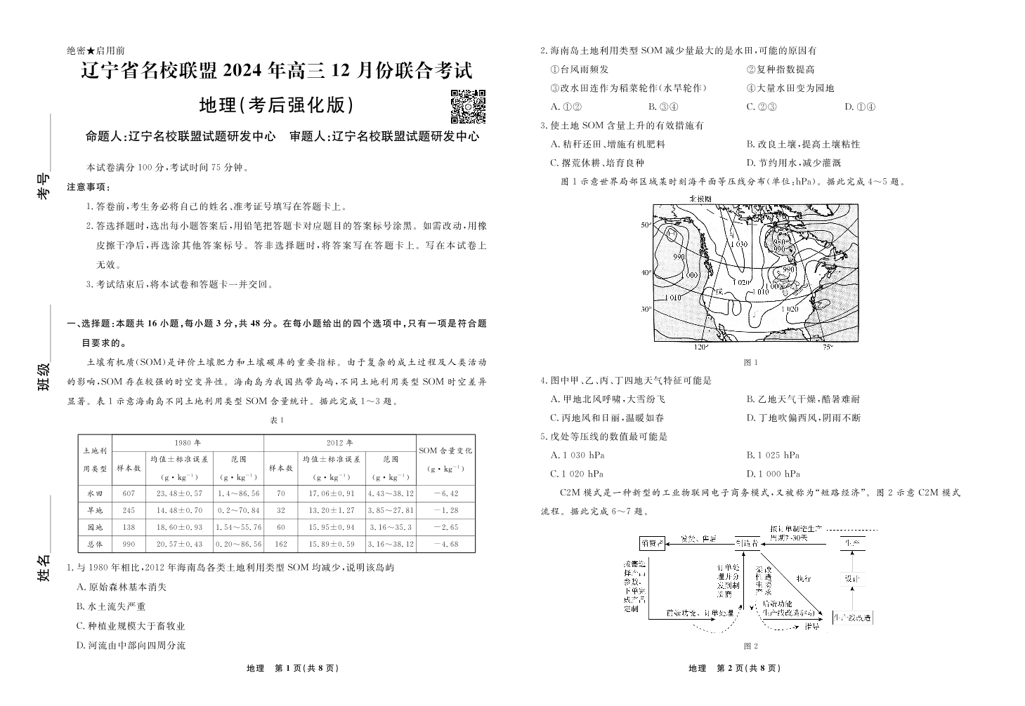 辽宁省名校联盟2024年高三12月份联合考试 地理